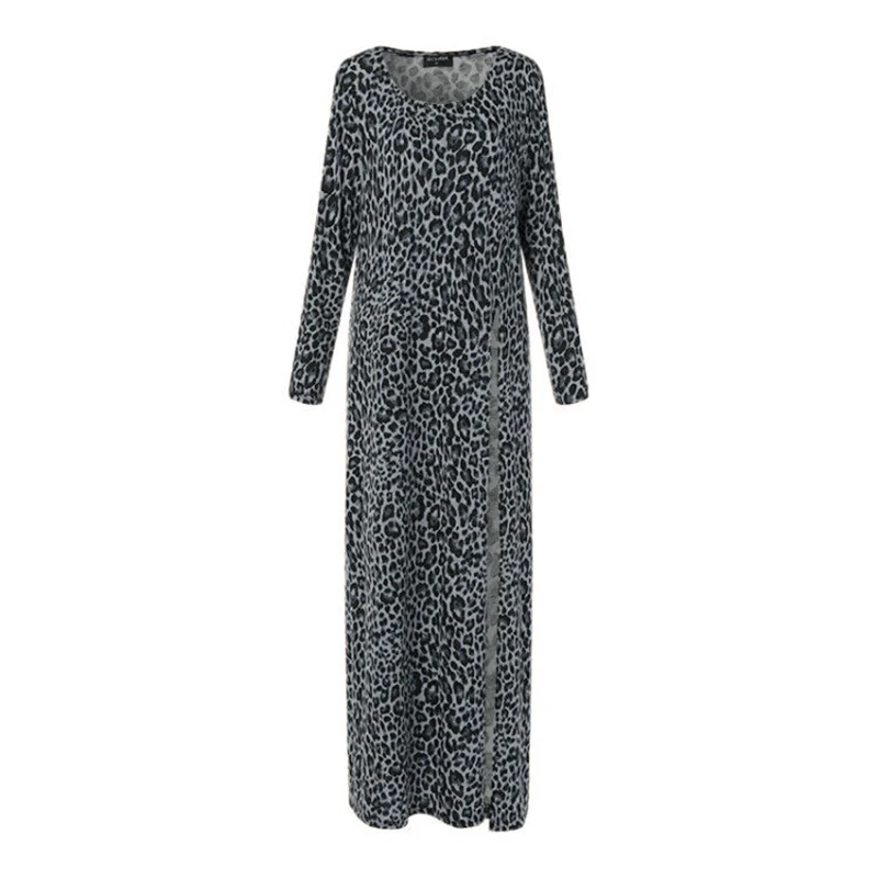 Best Product VONDA Plus Size Women Leopard Print Dress 2019 Autumn Sexy Split Club Party Maxi Dresses Casual Loo