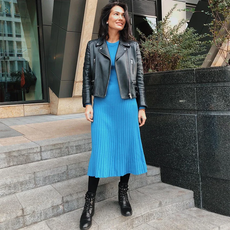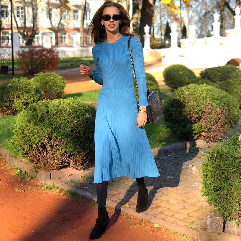 New Product Winter Dress Women Long Sleeve Warm Knitted Midi Sweater Dress O-Neck Solid Casual Autumn Clothes 2