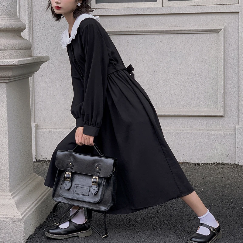 Discount Dress Women Dark Fashion Preppy Style Long Sleeve Lolita Dresses Japanese Sweet Peter Pan Collar Lo
