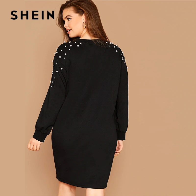 This product SHEIN Plus Size Black Pearl Beaded Sweatshirt Casual Dress Women Spring Autumn Round Neck Plus Soli is provided for you. Don't hesitate to buy this product.if you are interested in this product and want to buy, just click the buy button to get a discount