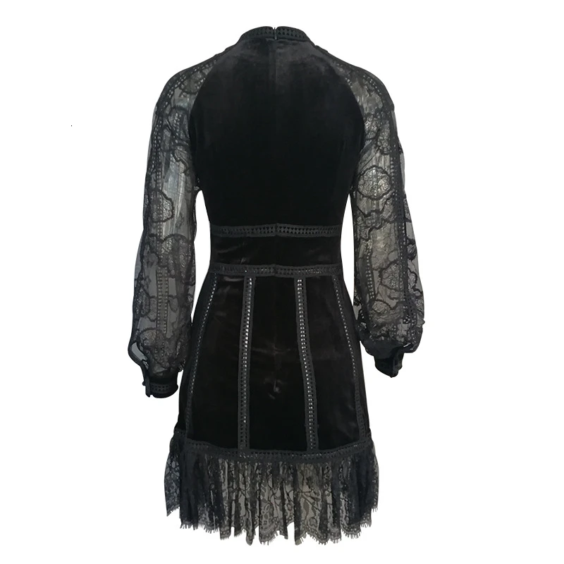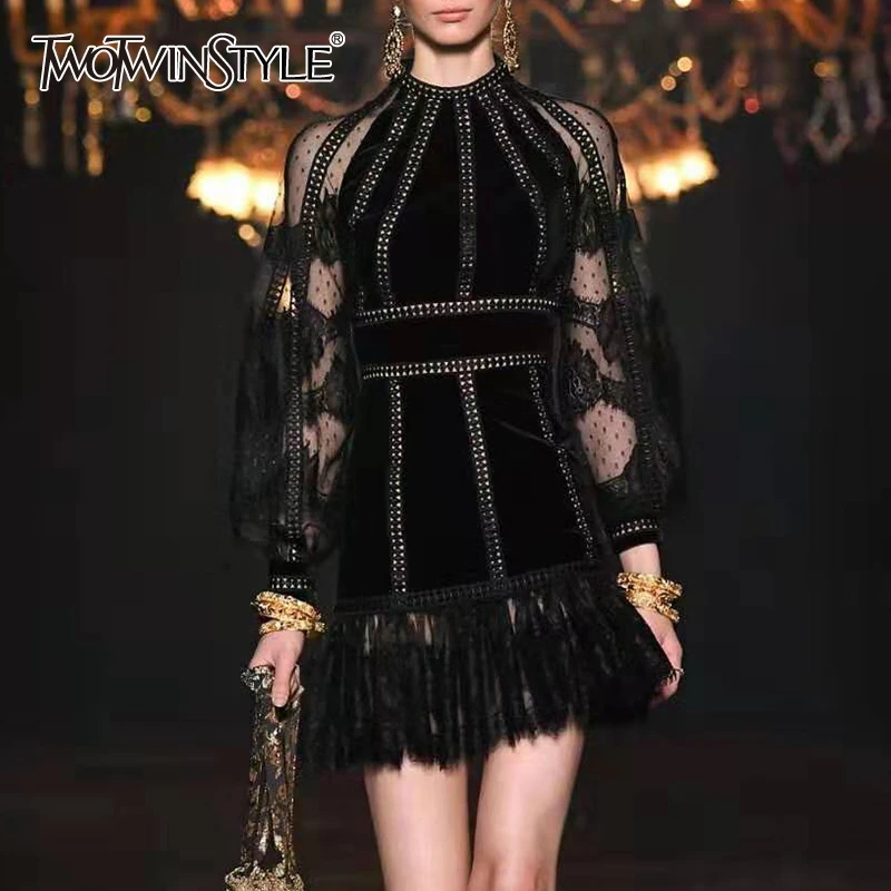 Good Product TWOTWINSTYLE Patchwork Lace Dress For Women O Neck Lantern Long Sleeve High Waist Mini Dresses Fema
